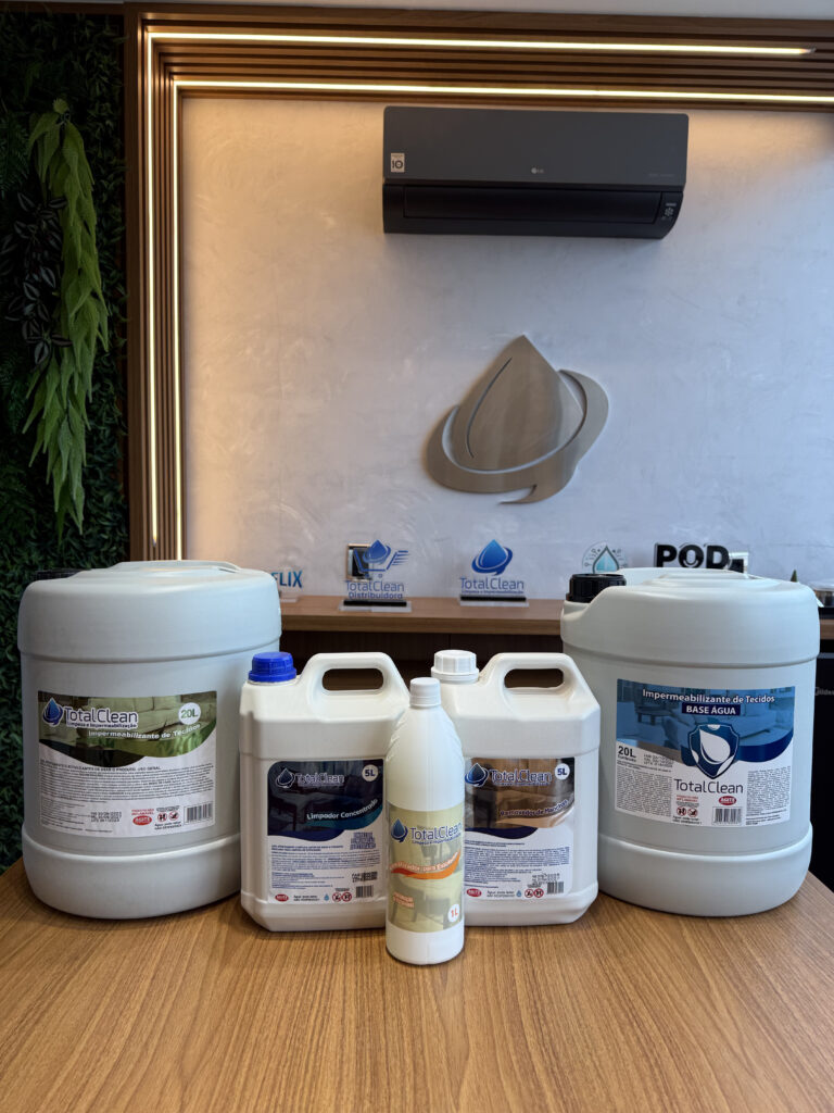 A Total Clean Distribuidora é a empresa do Grupo Total Clean responsável por fabricar e distribuir a linha profissional de produtos para limpeza e impermeabilização de estofados.